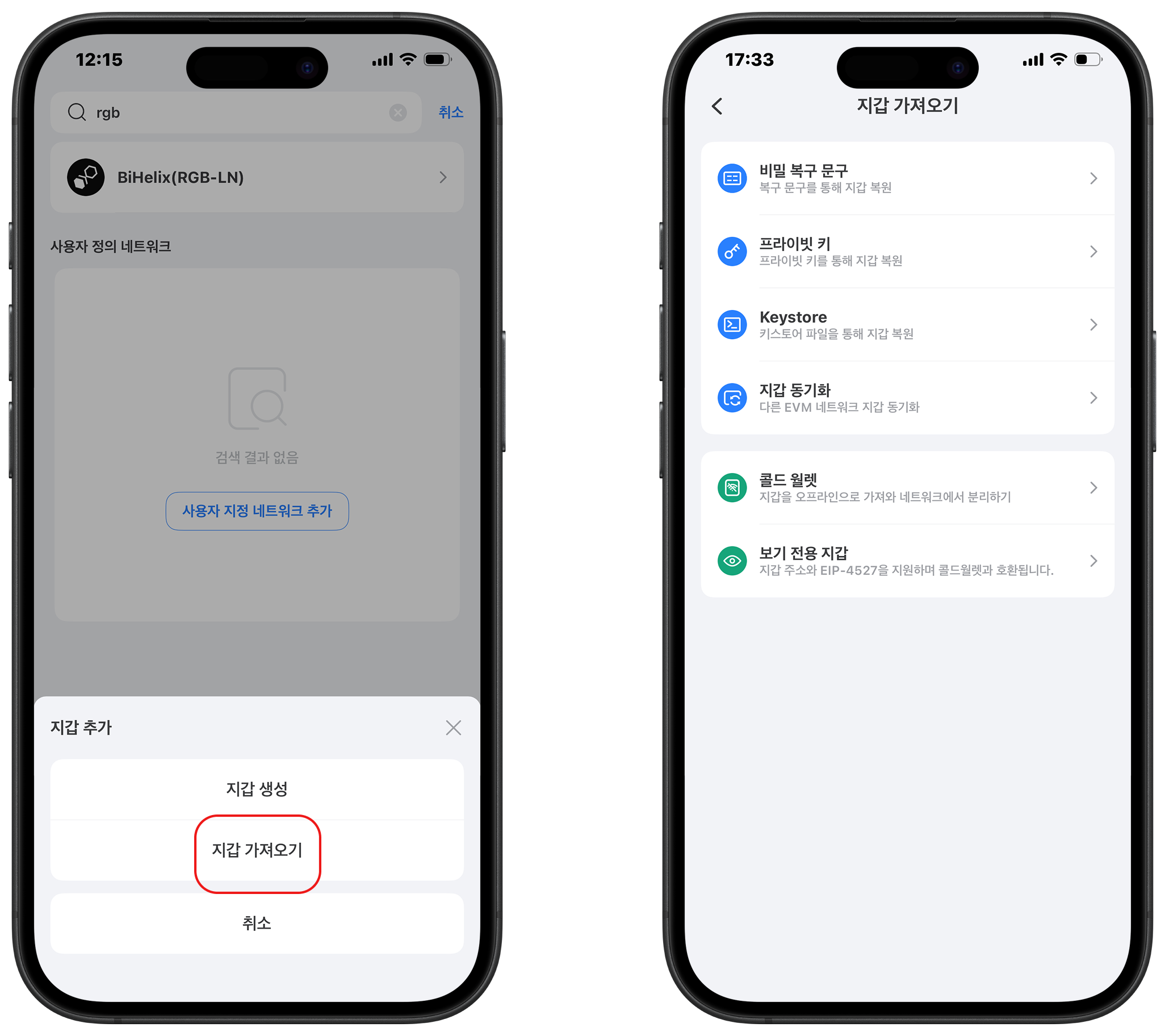 <mark style="color:red;">BiHelix (RGB-LN) 네트워크의 서브 지갑 기능은 다른 EVM 체인과 유사합니다. 메인 지갑의 니모닉 문구를 보유하고 지갑을 가져오면 위에서 언급한 방법을 사용하여 서브 지갑을 다시 추가할 수 있습니다.</mark>