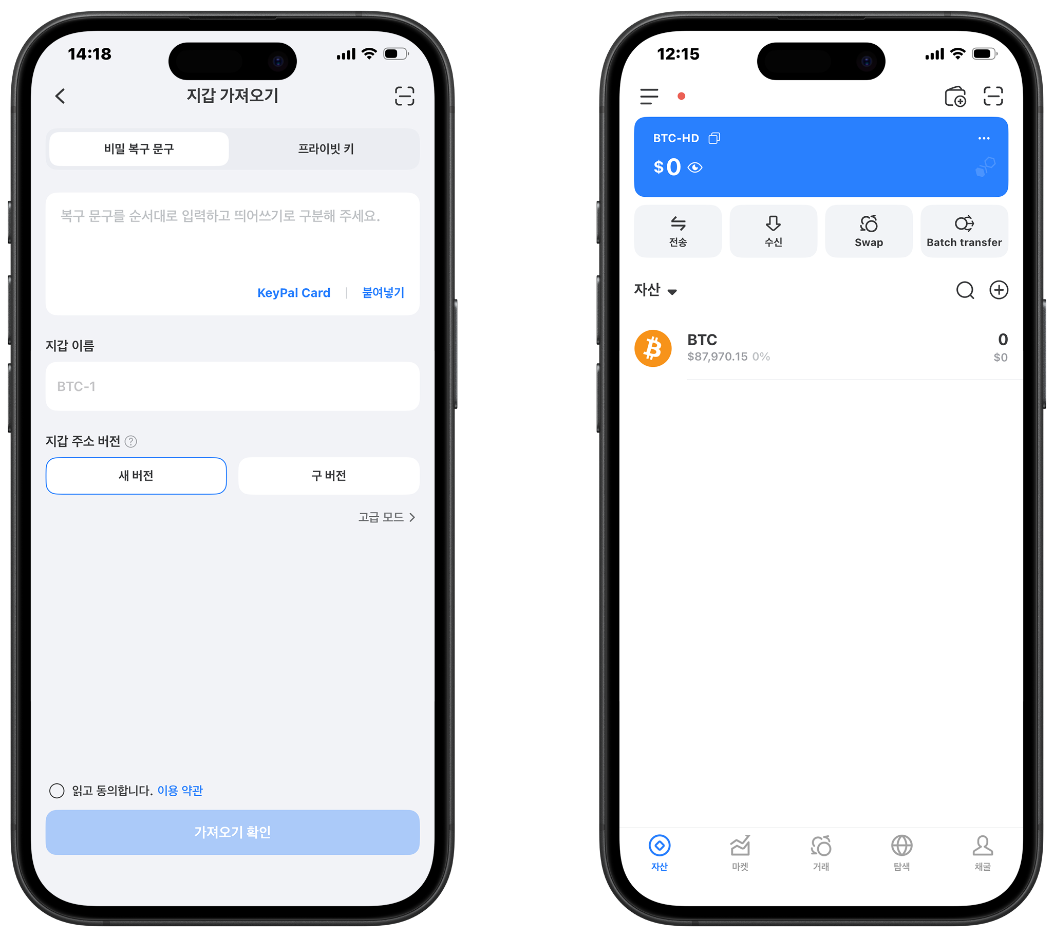 **참고: 자금의 안전을 보장하기 위해 니모닉 문구나 개인 키를 누구에게도 공개하지 마세요!**