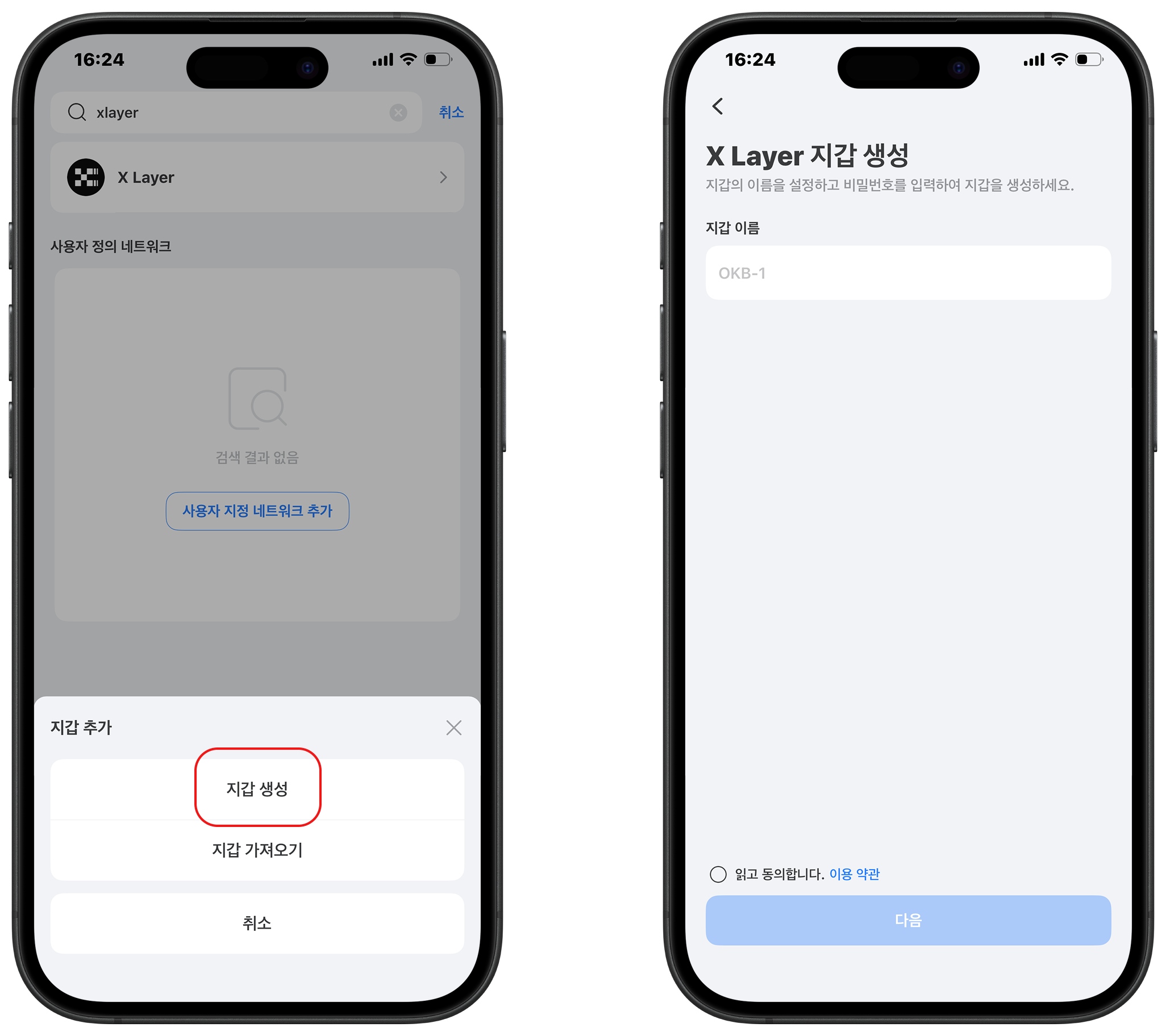 <figure><img src="https://2635091210-files.gitbook.io/~/files/v0/b/gitbook-x-prod.appspot.com/o/spaces%2F-MYDTQZz8SAKtEV8VeYE%2Fuploads%2FkWi7ScmHSf0M7JAMp3M6%2Fxlayer-createwallet-4.png?alt=media&#x26;token=718653bd-0214-4edb-bbca-e6ed278feb8e" alt=""><figcaption></figcaption></figure>