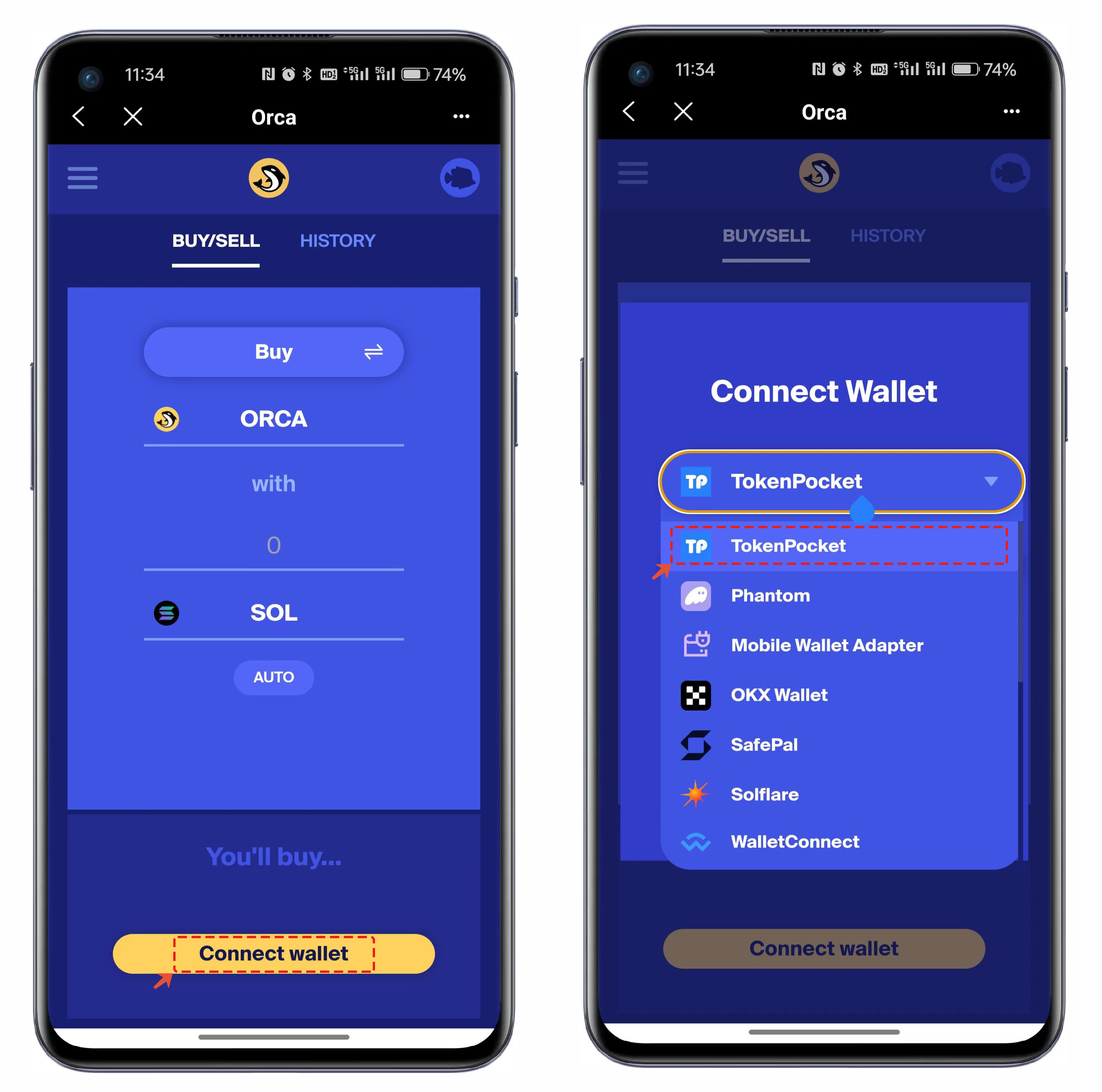 2. 첫 사용 시 【Connect Wallet】을 클릭하고 TokenPocket을 선택해 지갑을 연결한다.