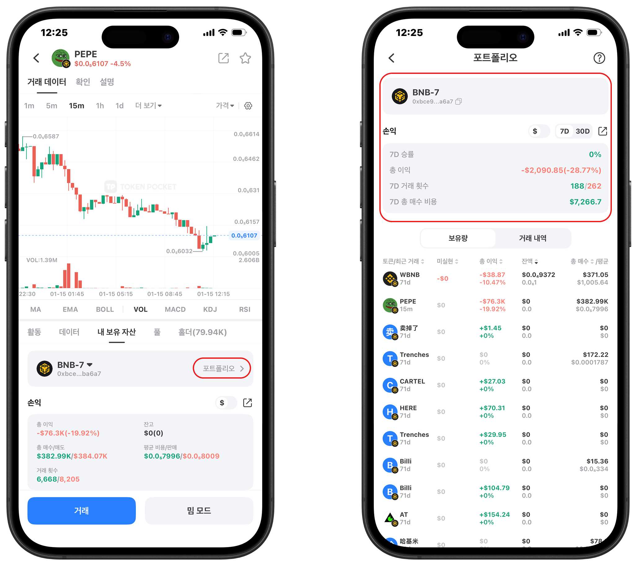<mark style="color:red;">TokenPocket Android 2.4.5 및 iOS 2.6.6 이상 버전에서 손익 분석 데이터와 포트폴리오를 확인할 수 있습니다.</mark>